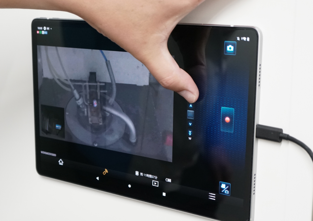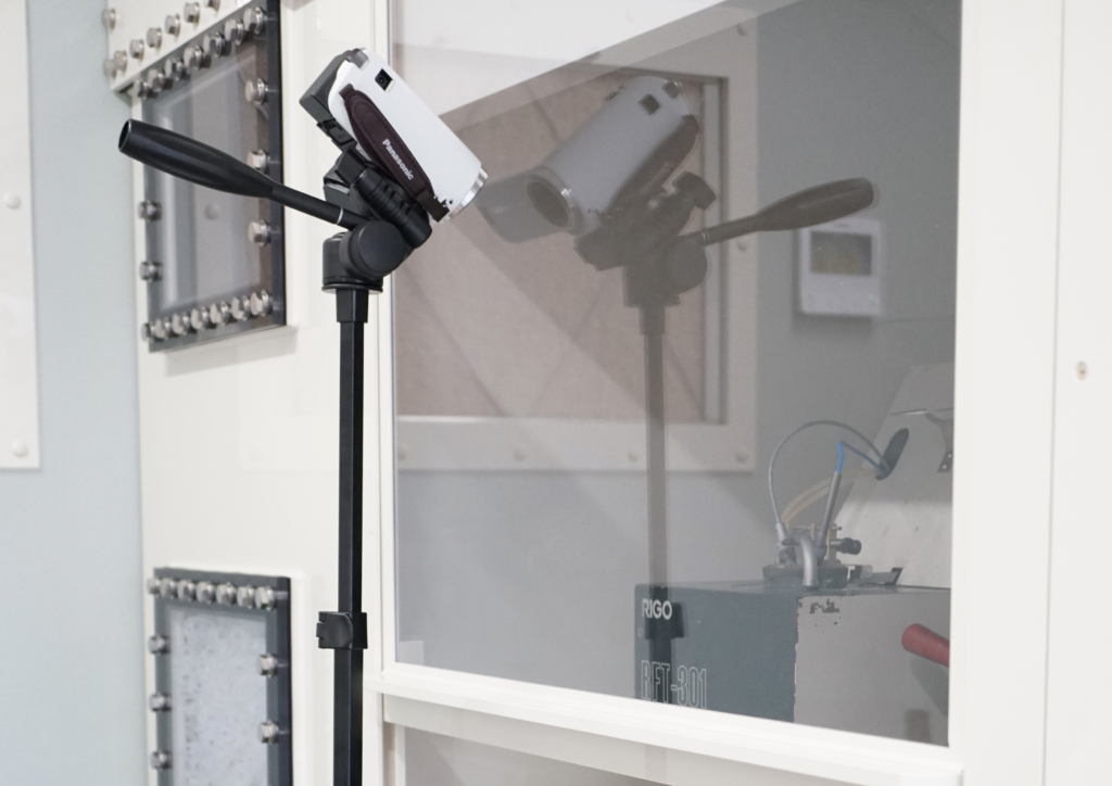 試験機をドラフト内に設置し、かつ遠隔監視のシステムを導入しました。試験従事者は試験機から隔絶された環境で試験状況を確認できます。二重の安全対策で腐食性ガスから試験従事者を保護し、支障のない試験を受託できます。